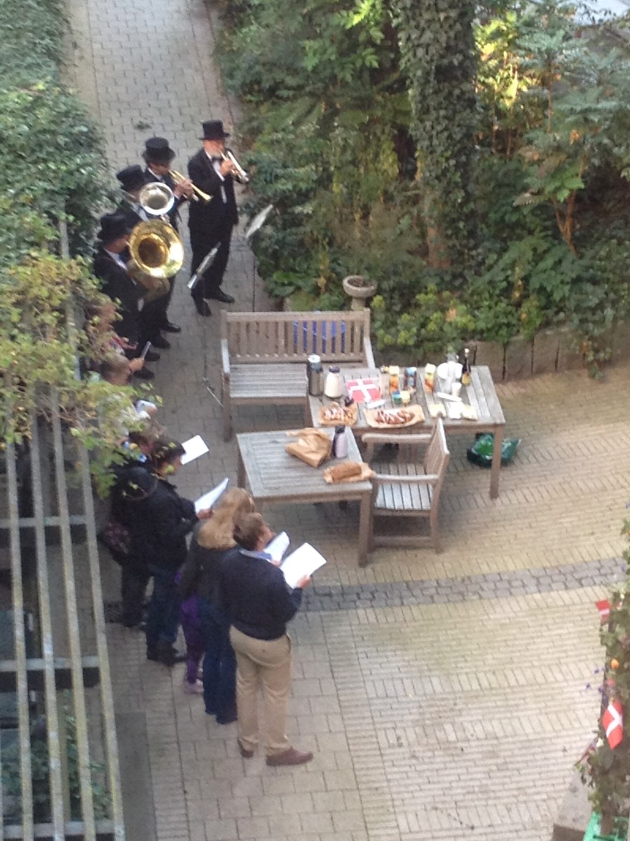 A brass band for someone’s birthday in our courtyard, at 7am